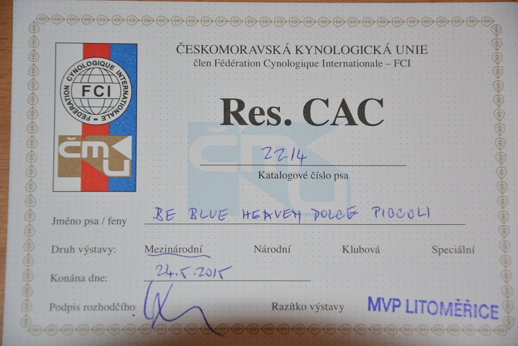 Be Blue Heaven Dolce Piccoli: třída mezitřída - výborný 2 res.CAC